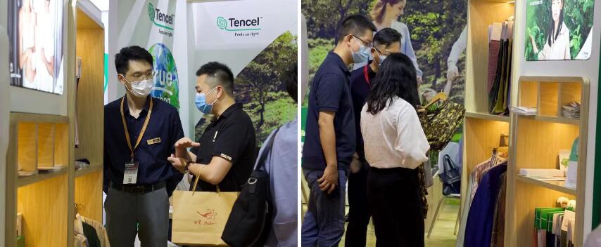 開展首日,中國(guó)紡織工業(yè)聯(lián)合會(huì)嘉賓團(tuán)以及業(yè)內(nèi)重要嘉賓紛紛到訪蘭精展位,通過(guò)近距離參觀交流,親身體驗(yàn)天絲™纖維開啟的零碳之旅。