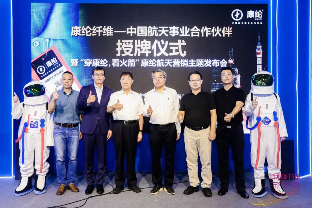 10月10日,在2021中國(guó)國(guó)際紡織紗線(秋冬)展覽會(huì)期間,由上海興諾康綸纖維科技股份有限公司(以下簡(jiǎn)稱“興諾康綸”)主辦,中國(guó)化學(xué)纖維工業(yè)協(xié)會(huì)、中國(guó)航天基金會(huì)支持的“康綸纖維——中國(guó)航天事業(yè)合作伙伴”授牌儀式暨“穿康綸,看火箭”康綸纖維航天營(yíng)銷主題發(fā)布會(huì)在國(guó)家會(huì)展中心8.2號(hào)館成功舉辦。