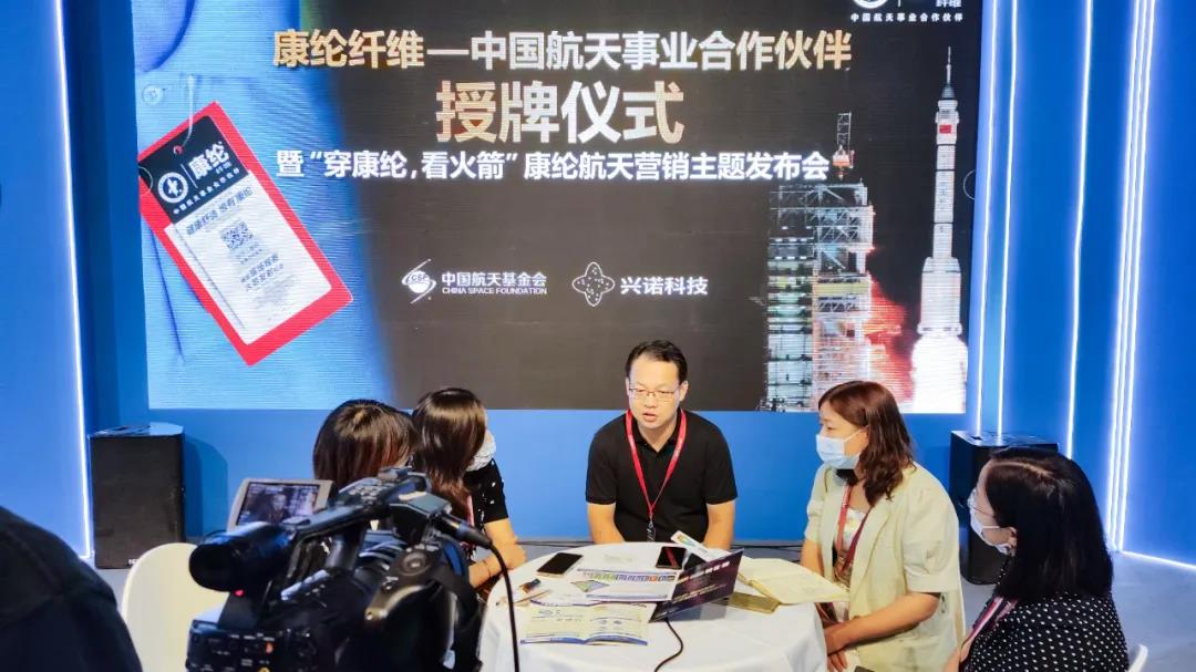 在媒體訪談環(huán)節(jié),興諾康綸董事長(zhǎng)趙丹青向記者介紹了康綸航天®纖維多個(gè)系列產(chǎn)品的優(yōu)勢(shì)亮點(diǎn)、應(yīng)用領(lǐng)域和發(fā)展前景,以及未來(lái)產(chǎn)業(yè)鏈上下游合作推廣方向。他指出“康綸航天®纖維主打健康、環(huán)保系列產(chǎn)品,可廣泛用于貼身衣物、運(yùn)動(dòng)、航天、非織造布等領(lǐng)域,目前已經(jīng)陸續(xù)被安踏,愛(ài)慕,太平鳥(niǎo)、七匹狼、特步、小米等行業(yè)頭部品牌采用或意向簽約,并打造了綠盾口罩、康綸航天內(nèi)褲等多個(gè)自主品牌產(chǎn)品。