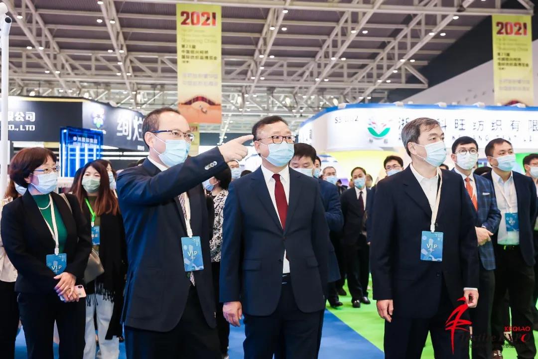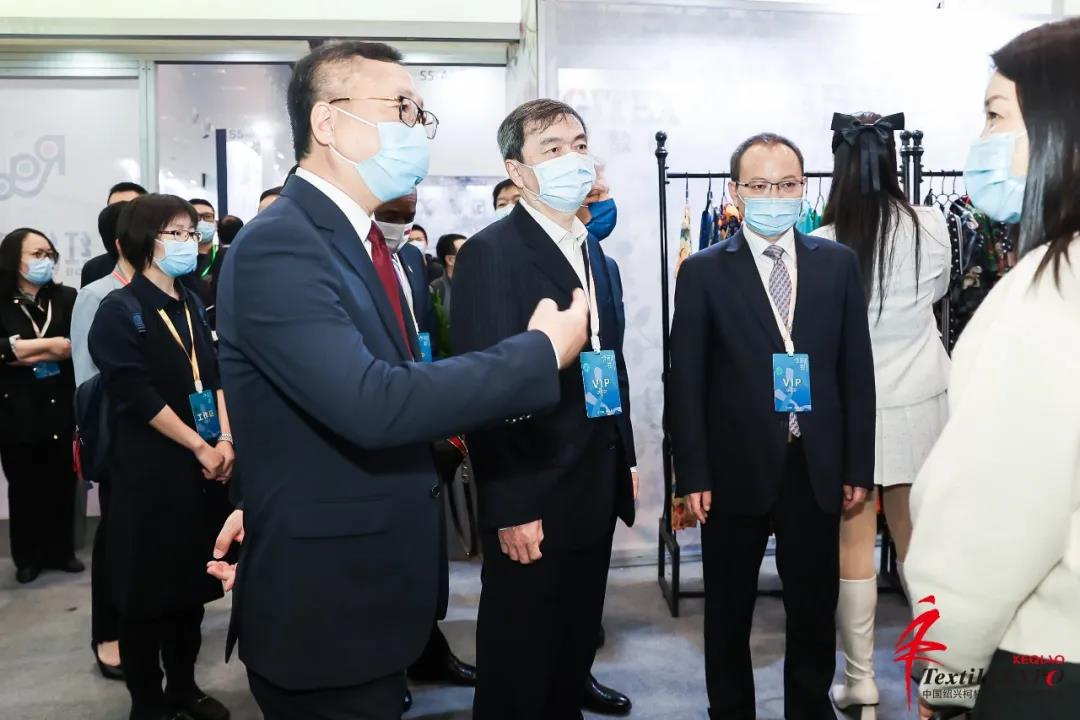 展會(huì)首日,工信部總經(jīng)濟(jì)師許科敏,國(guó)際紡織制造商聯(lián)合會(huì)主席、中國(guó)紡織工業(yè)聯(lián)合會(huì)會(huì)長(zhǎng)孫瑞哲,工信部消費(fèi)品工業(yè)司一級(jí)巡視員曹學(xué)軍,中國(guó)商業(yè)聯(lián)合會(huì)副會(huì)長(zhǎng)傅龍成,中國(guó)紡織品進(jìn)出口商會(huì)副會(huì)長(zhǎng)張錫安,中國(guó)紡織工業(yè)聯(lián)合會(huì)副會(huì)長(zhǎng)陳大鵬,塞浦路斯駐華大使公使Antonis Toumazis,多米尼克駐華大使公使H.E. Martin Charles,印度尼西亞駐華大使公使Virdiana Ririen Hapsari,紹興市委常委、組織部部長(zhǎng)王琴英,柯橋區(qū)委書記趙如浪,區(qū)委副書記、區(qū)長(zhǎng)陳豪,區(qū)人大主任朱曉董,區(qū)政協(xié)主席孟柏干等領(lǐng)導(dǎo)嘉賓參觀展會(huì)現(xiàn)場(chǎng)。