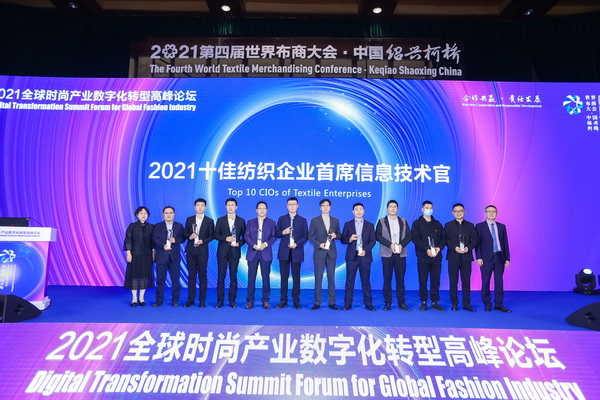 為進(jìn)一步總結(jié)和推廣紡織行業(yè)數(shù)字化轉(zhuǎn)型發(fā)展的創(chuàng)新成果與實(shí)踐經(jīng)驗(yàn),促進(jìn)智慧設(shè)計(jì)、智能制造、智慧管理、智慧營(yíng)銷以及智能紡織品技術(shù)的應(yīng)用,中國(guó)紡織信息中心與國(guó)家紡織產(chǎn)品開發(fā)中心聯(lián)合開展了“征集十佳數(shù)字技術(shù)應(yīng)用案例與評(píng)選十佳CIO活動(dòng)”,并在本次論壇上舉行了隆重的表彰儀式。