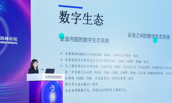 賽趨科軟件(上海)有限公司亞太區(qū)市場(chǎng)總監(jiān)董葉曼在《PLM 如何賦能紡織時(shí)尚企業(yè)研發(fā)管理創(chuàng)新》的演講中闡述了應(yīng)用全覆蓋化的PLM數(shù)字化技術(shù)解決方案,進(jìn)行管理和優(yōu)化從創(chuàng)意到現(xiàn)實(shí)的整個(gè)產(chǎn)品生命周期,并解決服裝品牌和制造商研發(fā)管理三大核心關(guān)注問題。形成產(chǎn)品創(chuàng)新研發(fā)管理數(shù)據(jù)流閉環(huán),提升開發(fā)管理效率、降低研發(fā)成本。助力企業(yè)更準(zhǔn)確預(yù)測(cè)未來(lái)需求,同時(shí)以數(shù)字化賦能產(chǎn)業(yè)發(fā)展,加速了制造大國(guó)向制造強(qiáng)國(guó)邁進(jìn)的新進(jìn)程。