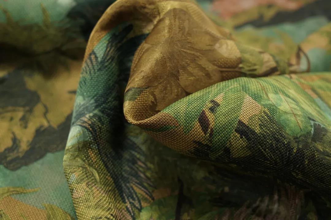 本屆大賽獲獎產(chǎn)品亮點紛呈,在時尚創(chuàng)意、技術(shù)創(chuàng)新與綠色設(shè)計等產(chǎn)品開發(fā)方面可圈可點。如金獎產(chǎn)品——杭州萬事利絲綢科技有限公司的“秘境傳奇”,采用新型環(huán)保印染技術(shù)模擬香云紗外觀,將自然叢林景觀印花工藝與精美花卉提花工藝進(jìn)行完美結(jié)合的同時增強了整體層次感與立體通透感。獲得了時尚度與市場應(yīng)用價值俱佳的廣泛好評。
