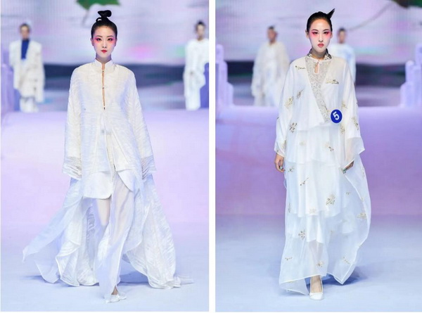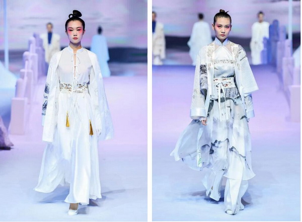 唯有民族服飾,能夠穿越千年時光,保持經(jīng)典不變的神韻。決賽當(dāng)晚,100套漢文化服飾作品華麗登場,行云流水的意境之美,為觀眾帶來了一場如詩如畫的國風(fēng)盛宴,盡顯新銳設(shè)計師們的巧思妙想。此外,由第15屆、第21屆中國時裝設(shè)計“金頂獎”獲得者、中國服裝設(shè)計師協(xié)會副主席、Beautyberry品牌創(chuàng)始人王鈺濤指導(dǎo)、池上錦漢服特色產(chǎn)業(yè)街區(qū)的優(yōu)質(zhì)品牌重回漢唐、瞳莞、豐蟬等共同打造的漢服品牌聯(lián)合秀驚艷登場,全面展示了漢服品牌在文化元素挖掘、產(chǎn)品研發(fā)、美學(xué)表達等方面的創(chuàng)新成果。