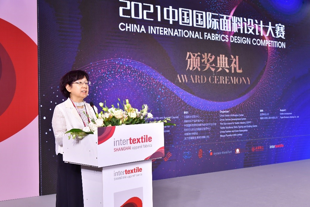 國(guó)際紡織制造商聯(lián)合會(huì)主席、中國(guó)紡織工業(yè)聯(lián)合會(huì)會(huì)長(zhǎng)孫瑞哲,中國(guó)紡織工業(yè)聯(lián)合會(huì)紀(jì)委書記王久新,中國(guó)紡織工業(yè)聯(lián)合會(huì)副會(huì)長(zhǎng)徐迎新,中國(guó)紡織工業(yè)聯(lián)合會(huì)原副會(huì)長(zhǎng)張延愷,中國(guó)紡織信息中心主任喬艷津,法蘭克福展覽(香港)有限公司高級(jí)總經(jīng)理溫婷,中國(guó)紡織信息中心副主任胡松,國(guó)家紡織產(chǎn)品開發(fā)中心主任李斌紅,中國(guó)流行色協(xié)會(huì)會(huì)長(zhǎng)朱莎,中國(guó)國(guó)際貿(mào)易促進(jìn)委員會(huì)紡織行業(yè)分會(huì)副會(huì)長(zhǎng)常清,中國(guó)紡織信息中心副主任李波,國(guó)家紡織產(chǎn)品開發(fā)中心總工程師陳寶建,Cotton Incorporated亞洲供應(yīng)鏈營(yíng)銷副總監(jiān)林蓓,福建永榮錦江股份有限公司市場(chǎng)品牌副總陳信富等領(lǐng)導(dǎo)和嘉賓出席了本次頒獎(jiǎng)典禮。
