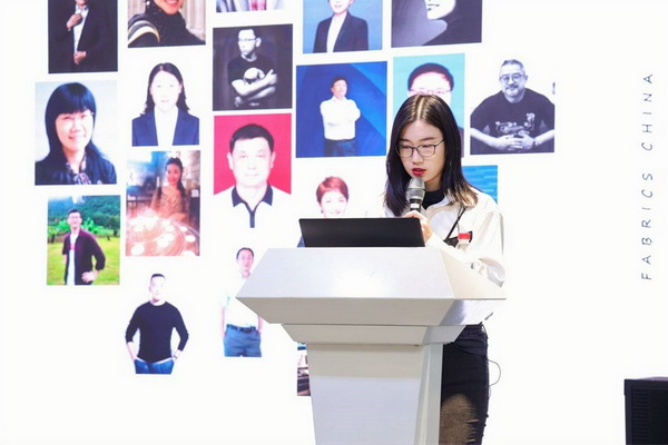 在《2022/23秋冬趨勢(shì)研發(fā)面料及設(shè)計(jì)應(yīng)用——中國(guó)流行面料產(chǎn)品解讀》演講中,中國(guó)紡織信息中心創(chuàng)意設(shè)計(jì)部項(xiàng)目專員張曼從色彩應(yīng)用、紋樣創(chuàng)意、材料應(yīng)用、科技創(chuàng)新、生態(tài)環(huán)保等多個(gè)維度,全面解析2022/23秋冬中國(guó)流行入圍優(yōu)秀產(chǎn)品。