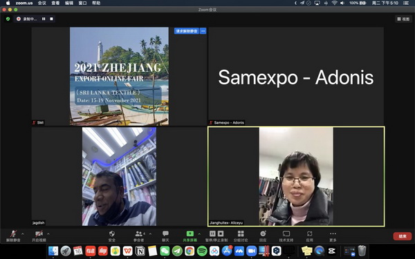 11月19日,為期5天的2021浙江出口網(wǎng)上交易會(huì)(斯里蘭卡站-紡織專(zhuān)場(chǎng))于斯里蘭卡當(dāng)?shù)?點(diǎn)圓滿(mǎn)收官。本次線上展會(huì)由浙江省商務(wù)廳主辦,浙江三博會(huì)展股份有限公司承辦。
