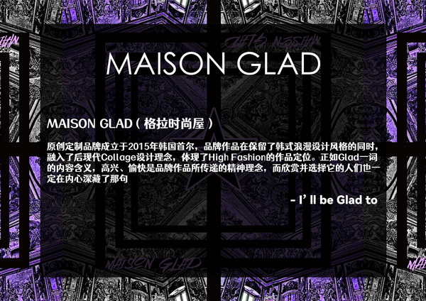 朝鮮族新銳設(shè)計(jì)師樸龍杰于2015年創(chuàng)立MAISON GLAD品牌,其作品融合多民族色彩,線條明麗,融入后現(xiàn)代Collage設(shè)計(jì)理念。“MAISON GLAD品牌將藝術(shù)概念注入時(shí)裝,秉承著same but different的創(chuàng)作態(tài)度,作品在浪漫、復(fù)古、神秘中交織,不拘于年齡的束縛,等待著那些真正與之匹配的名媛紳士?!睒泯埥苷f道。MAISON GLAD PREMIUM KIDS作為MAISON GLAD旗下童裝線原創(chuàng)定制品牌,依舊由樸龍杰抄刀設(shè)計(jì),延續(xù)了浪漫、復(fù)古、神秘的設(shè)計(jì)風(fēng)格。在High Fashion的作品定位下,掙脫了服裝類別固定場合的束縛,無論是高街潮服亦或奢美禮服,在孩子們童年的每一天可以任意選擇,讓夢更長一些。