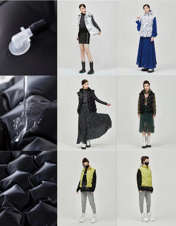 眾所周知,冬季棉服的填充物基本上以動物的絨毛、化學(xué)纖維以及植物纖維為主,在生產(chǎn)加工這些填充物的過程中,不僅增加了碳排放,還浪費水資源,而上海申羽紡織集團推出的AirCoat空氣服是用空氣作為填充物的時尚衣物,這樣以來實現(xiàn)了零碳排放,節(jié)省了水資源,具有較高的社會效益!