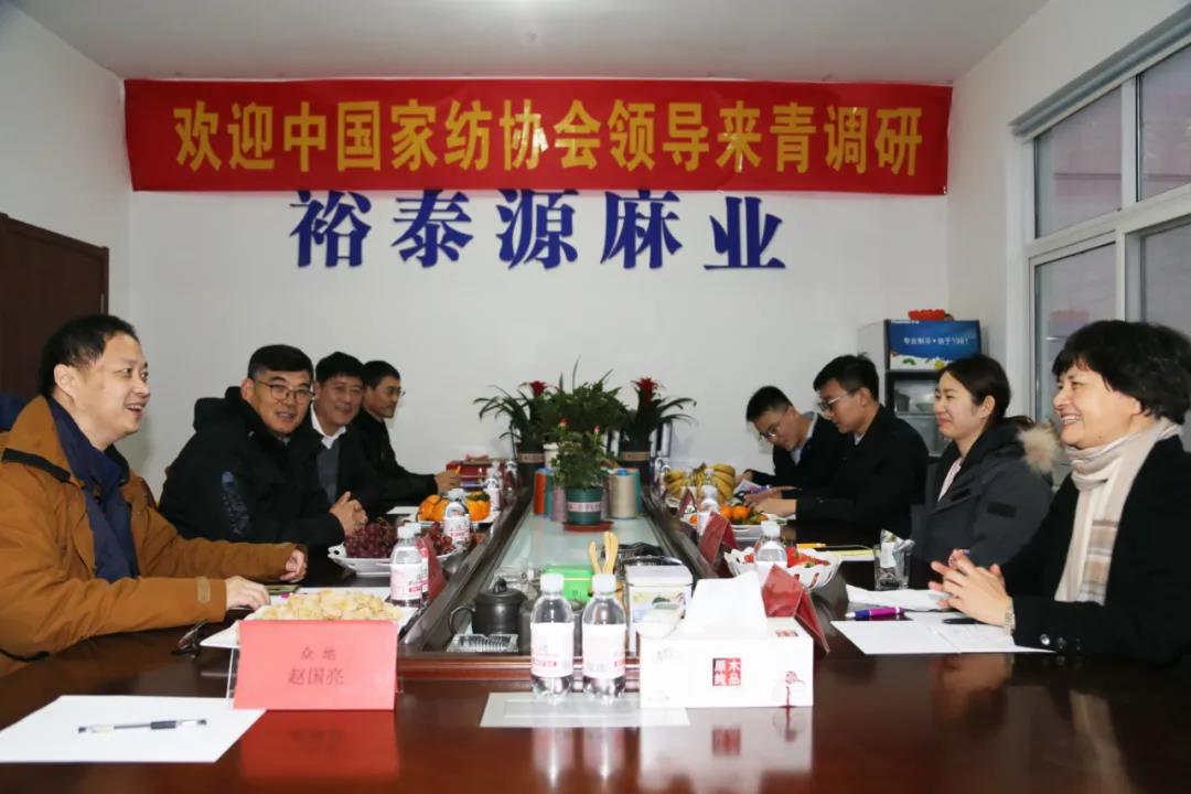 為進(jìn)一步深入了解青島家紡產(chǎn)業(yè)集群發(fā)展、企業(yè)情況以及遇到的問(wèn)題,12月22-23日,中國(guó)家用紡織品行業(yè)協(xié)會(huì)副會(huì)長(zhǎng)朱曉紅、辦公室主任阮航,中國(guó)紡織貿(mào)促會(huì)家紡展覽部副主任朱勤一行5人(以下簡(jiǎn)稱“中家紡一行”),在青島家紡協(xié)會(huì)會(huì)長(zhǎng)王如平、秘書(shū)處毛光亮的陪同下,參觀走訪了青島邦特生態(tài)紡織科技有限公司、青島絲諾紡織品有限公司、青島金泰家紡有限公司、眾地家紡有限公司、青島裕泰源麻業(yè)染整有限公司、青島羽翎珊家紡織品集團(tuán)有限公司和青島莫特斯家居用品有限公司。此次參觀的企業(yè)特色鮮明,在新材料、新工藝、新時(shí)尚以及細(xì)分領(lǐng)域方面具有獨(dú)特的優(yōu)勢(shì)地位。