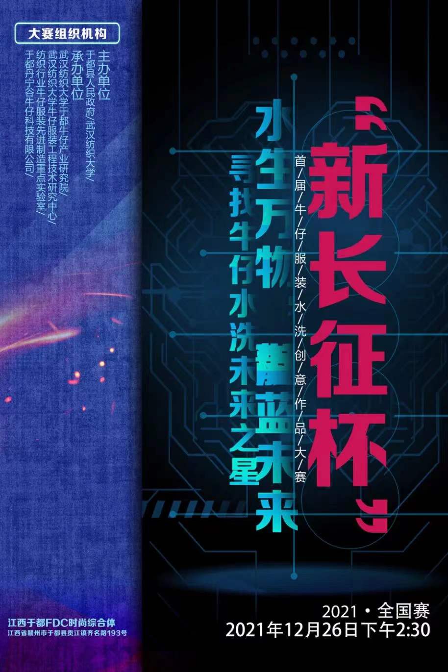 由于都縣人民政府、武漢紡織大學(xué)、紡織行業(yè)牛仔服裝先進(jìn)制造重點(diǎn)實(shí)驗(yàn)室聯(lián)合發(fā)起的,2021“新長征杯”全國牛仔服裝水洗創(chuàng)意作品大賽在于都縣FDC時尚產(chǎn)業(yè)綜合體舉行。本次大賽的主題是“水生萬物 靛藍(lán)未來”。中國紡織工業(yè)聯(lián)合會科技部創(chuàng)新處處長馮麗,武漢紡織大學(xué)副校長唐敏先后在開幕式上致辭,于都縣委副書記郭書瓏,于都縣政協(xié)主席賴曉強(qiáng),于都縣委常委、副縣長楊海峰以及鄧曉斌、藍(lán)淑娟等領(lǐng)導(dǎo)出席。