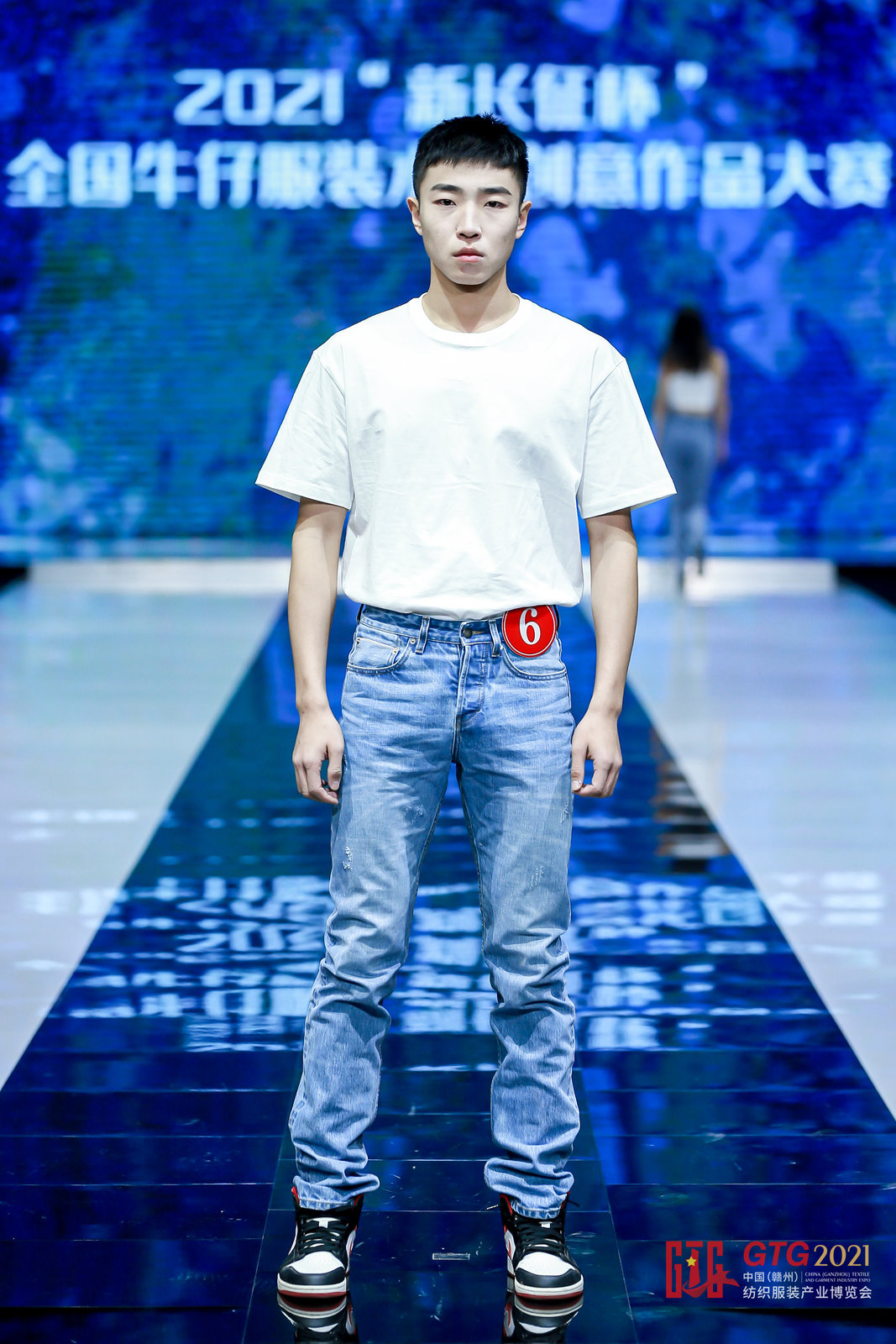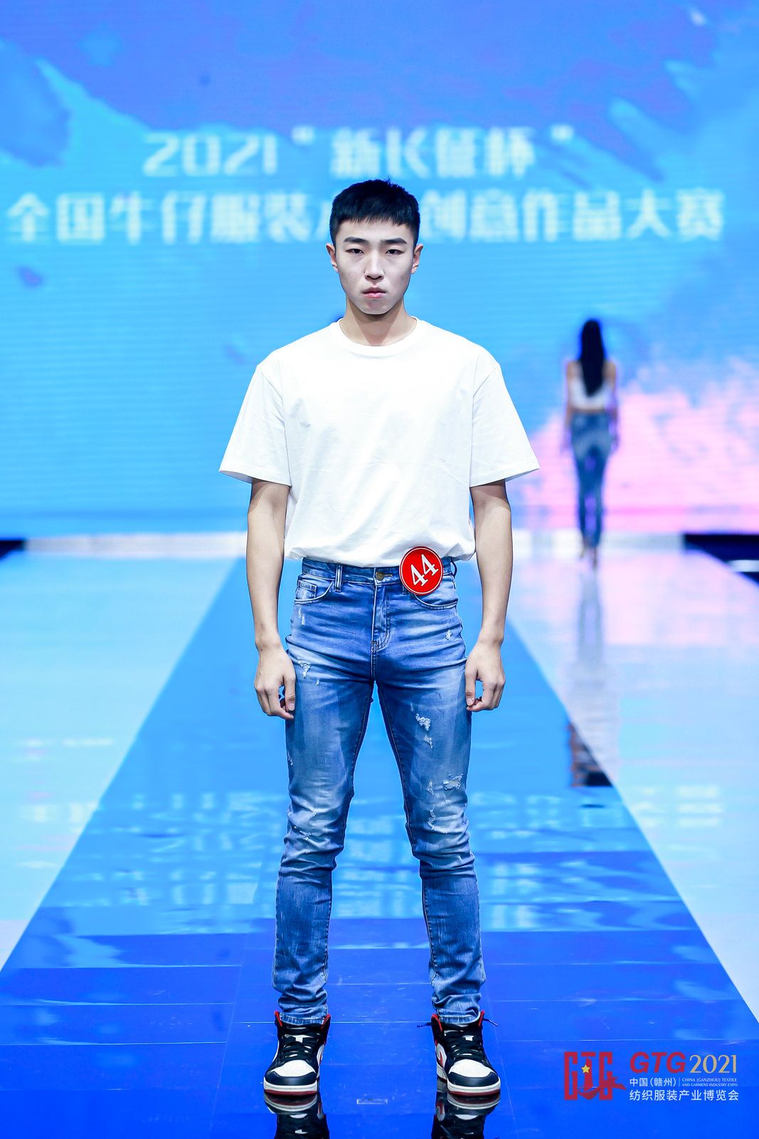 在接下來的比賽環(huán)節(jié)中,五十名模特依次登臺展示由各位設(shè)計師精心設(shè)計的牛仔服裝。配上解說員的激情解說,將每套服裝的特色與相關(guān)制造工藝生動地展示給評委及觀眾,在藍(lán)色的主體上,或復(fù)古或現(xiàn)代,星空裝飾點(diǎn)綴與字符文化的碰撞,各種別具匠心的設(shè)計樣式,融以主題理念,充分展現(xiàn)了牛仔服裝獨(dú)特的美,給在場觀眾留下了深刻的印象。