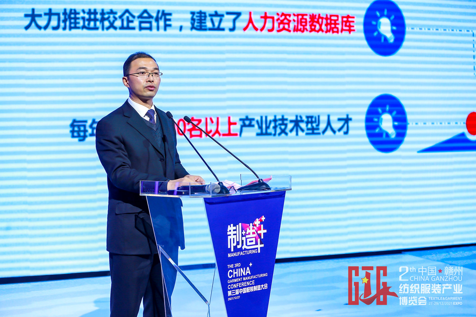 中共于都縣委常委、于都縣人民政府副縣長楊海峰在致辭中詳細介紹了于都縣紡織服裝產(chǎn)業(yè)發(fā)展歷程,并表示作為百萬人口大縣、千年人文之鄉(xiāng)、紅軍萬里長征集結出發(fā)地,于都近年來專注于首位產(chǎn)業(yè)——服裝業(yè)的發(fā)展,打造了六大投資優(yōu)勢。第一是區(qū)位好,毗鄰粵港澳大灣區(qū)、海西經(jīng)濟區(qū)和長三角城市群,交通四通八達,輻射帶動強。第二是人力足,從事紡織服裝行業(yè)的勞動力達30萬以上,并通過與校企合作,建立了人力資源數(shù)據(jù)庫,為推動產(chǎn)業(yè)發(fā)展提供了強有力的技術人才支撐。第三是平臺全,一方面園區(qū)配套全,擁有楂林工業(yè)小區(qū)、上歐工業(yè)小區(qū)和羅坳工業(yè)小區(qū)三個工業(yè)園區(qū);另一方面產(chǎn)業(yè)平臺也多,全力打造了紡織服裝十大公共服務平臺,并引進了梧桐臺、辛巴達等互聯(lián)網(wǎng)平臺和深圳文達跨境電商。第四是政策優(yōu),于都在稅收獎勵、IPO上市、設備(軟件)補貼、出口獎勵、廠房補貼、用地基礎設施獎勵等方面都給予大力支持。第五是環(huán)境美,一方面用工不愁,在招工用工方面給予大力扶持;另一方面辦事無憂,在優(yōu)化營商環(huán)境方面推陳出新,建立“一站式”“領辦制”服務。第六是前景好,中國服裝協(xié)會已連續(xù)兩年在于都舉辦中國服裝論壇創(chuàng)新峰會,持續(xù)聚焦全國、全行業(yè)的目光;于都已先后被列為“中國品牌服裝制造名城”、“國家紡織服裝外貿轉型升級基地”和“全國紡織服裝產(chǎn)業(yè)十大特色產(chǎn)業(yè)集群”。