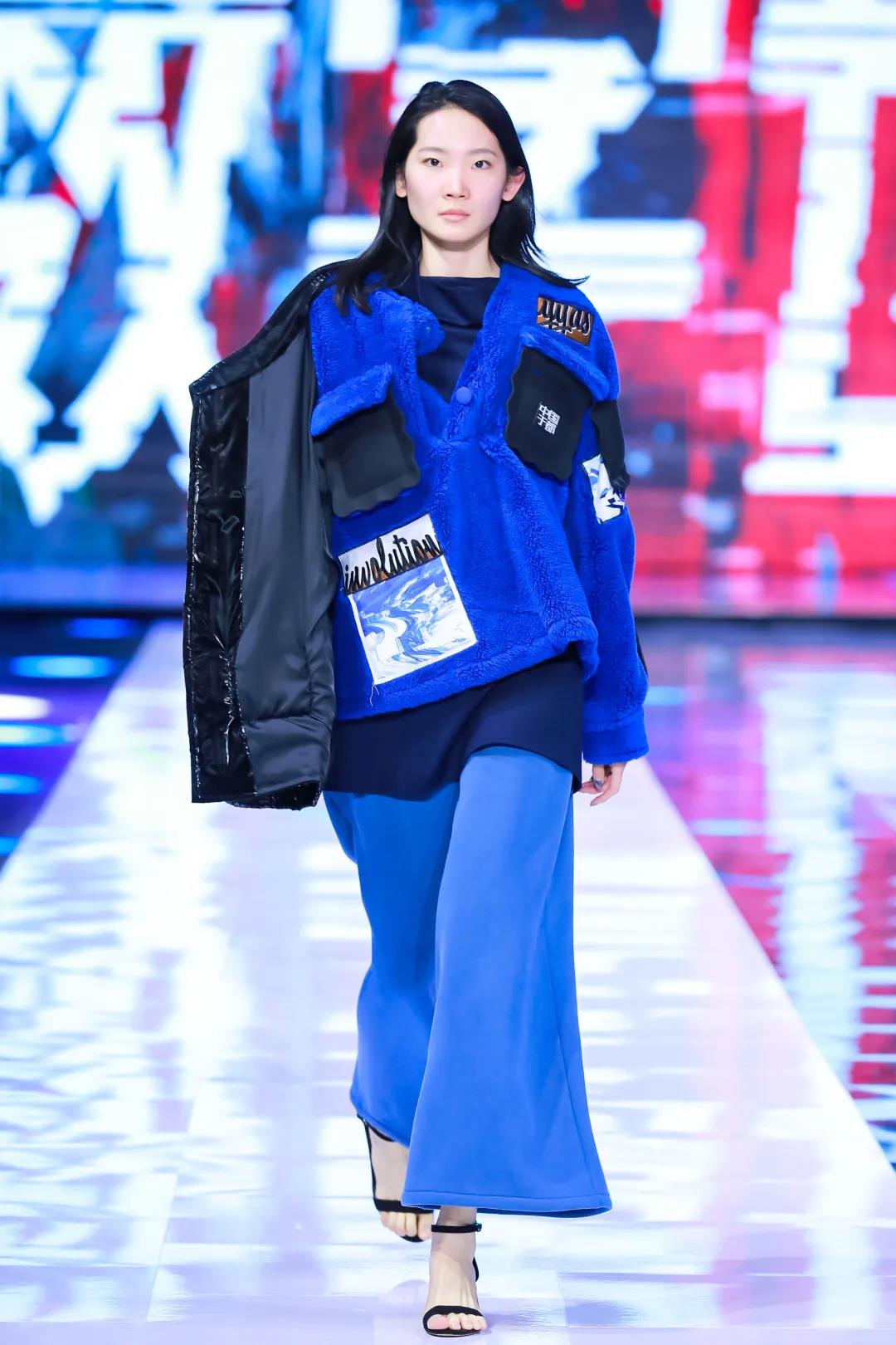 第一系列以RGB光模式里藍(lán)色調(diào)為主,以具有未來感空氣層面料與藝術(shù)牛仔面料進(jìn)行碰撞,以挺括寬松的版型表達(dá)新世代輕松灑脫、不拘一格的氣質(zhì)。在圖案上,將設(shè)計(jì)師的創(chuàng)作的具有中式風(fēng)格的書法與抽象水墨作品進(jìn)行藍(lán)色漸變映射,再將圖形線條進(jìn)行錯(cuò)位化處理,在中式風(fēng)格的基礎(chǔ)中呈現(xiàn)與數(shù)字化融合中偶然產(chǎn)生的出人意料的美。