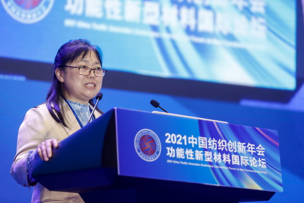 朱美芳院士在功能性新型材料國際論壇上作了《纖維新材料的創(chuàng)新發(fā)展與產(chǎn)業(yè)機遇》演講。她從纖維新材料的能量管理、綠色環(huán)保和健康時尚三個方面解讀纖維材料的功能化與智能化進展,重點闡述了纖維從單純保暖到智能能量轉換存儲的纖維物理化學結構演變過程,并提出纖維材料功能化、智能化、柔性化的發(fā)展方向。