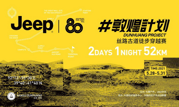 Jeep一如既往地秉承“自由”“征服”的品牌精神,Jeeper向來用經(jīng)歷來定義自己!參賽者們以輕負(fù)重徒步越野的形式,全程51KM,歷時(shí)2天1夜,第一天以哈拉湖為起點(diǎn),途徑漢長城遺址、疏勒河、二里半戈壁,當(dāng)夜在二里半戈壁駐扎并舉辦了篝火晚會(huì)。次日從二里半戈壁出發(fā),途經(jīng)土門墩補(bǔ)給點(diǎn)、絲路古道石碑,最終到達(dá)終點(diǎn)南泉。敦煌地貌多樣,變化多端,盡管天氣晝夜溫差大,但隊(duì)員們能克服種種困難抵達(dá)終點(diǎn),向世界展示了我們Jeep人敢于直面挑戰(zhàn),勇于探索的精神!徒步賽事結(jié)束后30日晚在國家級(jí)重點(diǎn)旅游風(fēng)景名勝區(qū)鳴沙山腳下的敦煌山莊舉行了頒獎(jiǎng)儀式。