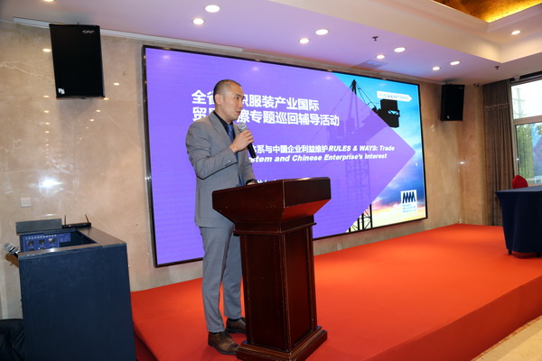 本次活動(dòng)邀請(qǐng)到北京大成律師事務(wù)所合伙人孫磊律師、北京服裝學(xué)院商學(xué)院郭燕教授、山東外貿(mào)職業(yè)學(xué)院副院長(zhǎng)劉珉教授等3位國(guó)內(nèi)外貿(mào)領(lǐng)域資深專家。他們分別就全球貿(mào)易救濟(jì)體系與中國(guó)企業(yè)利益維護(hù)、紡織行業(yè)的國(guó)際貿(mào)易摩擦趨勢(shì)及應(yīng)對(duì)、國(guó)際貿(mào)易發(fā)展趨勢(shì)和外貿(mào)風(fēng)險(xiǎn)防范等課題,作了精彩講解和互動(dòng)。