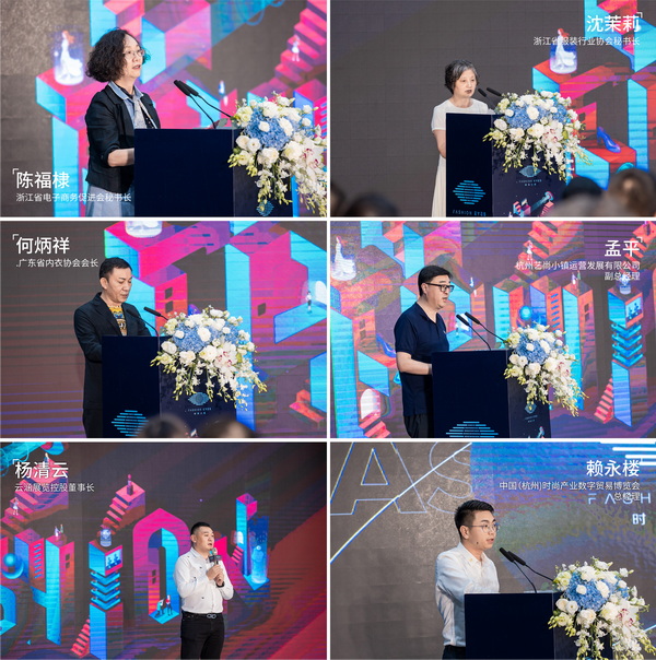 7月8日下午,以“見(jiàn)證·新生”為主題的2021中國(guó)【杭州】時(shí)尚產(chǎn)業(yè)數(shù)字貿(mào)易博覽會(huì)、全球互聯(lián)網(wǎng)時(shí)尚周新聞發(fā)布會(huì)在杭州隆重舉行。浙江省電子商務(wù)促進(jìn) 會(huì)秘書(shū)長(zhǎng)陳福棣、浙江省服裝行業(yè)協(xié)會(huì)秘書(shū)長(zhǎng)沈茉莉、廣東省內(nèi)衣協(xié)會(huì)會(huì)長(zhǎng)何炳祥、杭州藝尚小鎮(zhèn)運(yùn)營(yíng)發(fā)展有限公司副總經(jīng)理孟平、云涵展覽控股有限公司董事長(zhǎng)楊清云、中國(guó)(杭州)時(shí)尚產(chǎn)業(yè)數(shù)字貿(mào)易博覽會(huì)總經(jīng)理賴永樓等領(lǐng)導(dǎo)嘉賓以及多家行業(yè)主流媒體出席了本次活動(dòng),共同見(jiàn)證發(fā)布會(huì)啟動(dòng)儀式以及多項(xiàng)重磅戰(zhàn)略合作簽約,現(xiàn)場(chǎng)氣氛熱烈。