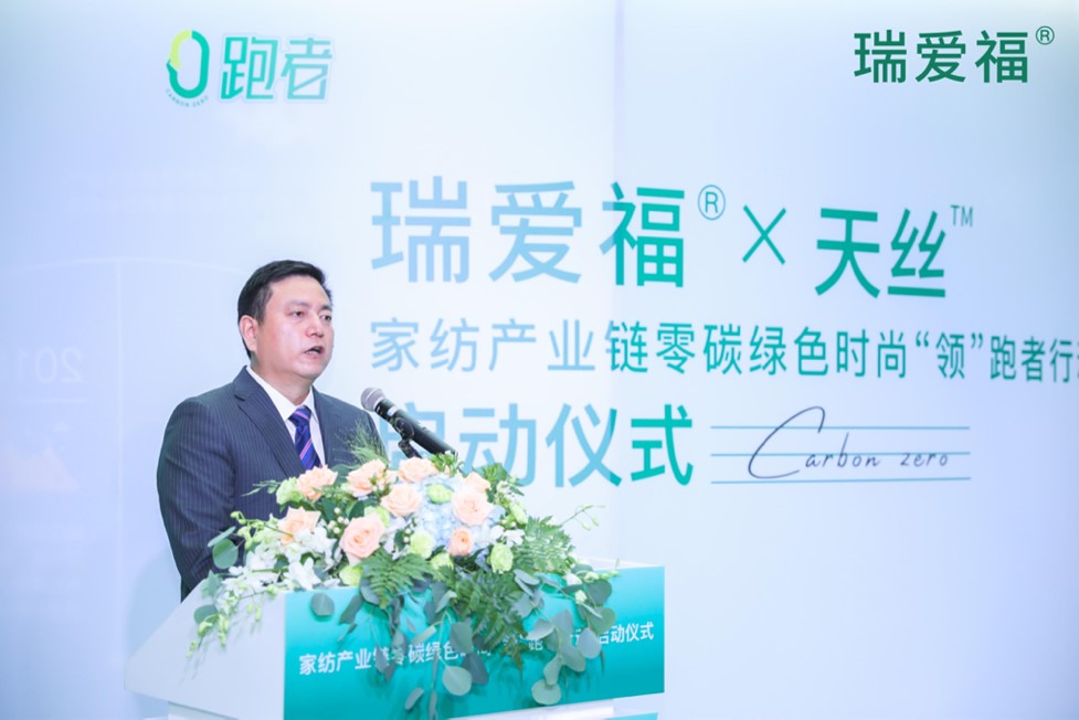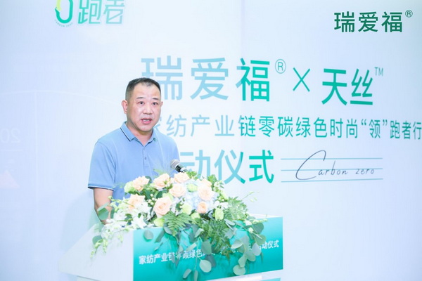 江蘇瑞愛福紡織科技有限公司董事長(zhǎng)胡文彪在發(fā)言時(shí)談到,瑞愛福一直致力于家紡綠色高端面料的研發(fā),于2014年與奧地利蘭精集團(tuán)形成戰(zhàn)略合作伙伴關(guān)系,此次與蘭精攜手推出零碳天絲™面料,旨在發(fā)揮國(guó)際家紡產(chǎn)業(yè)集聚優(yōu)勢(shì),將低碳環(huán)保理念深度融入家紡產(chǎn)業(yè)供應(yīng)鏈,不斷壯大零碳綠色時(shí)尚“領(lǐng)”跑者隊(duì)伍,做家紡產(chǎn)業(yè)可持續(xù)發(fā)展的有力推進(jìn)者與踐行者,從產(chǎn)業(yè)鏈綠色可持續(xù)發(fā)展的角度,打造更多綠色環(huán)保的優(yōu)質(zhì)產(chǎn)品,將可持續(xù)發(fā)展時(shí)尚理念傳遞給消費(fèi)者。