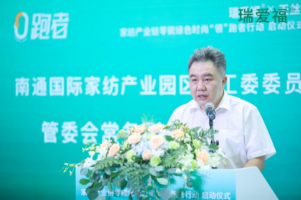 黨工委委員、管委會(huì)常務(wù)副主任劉鵬在致辭中表示,“十四五”是實(shí)現(xiàn)2030年前碳達(dá)峰的關(guān)鍵時(shí)期,也是南通家紡產(chǎn)業(yè)加快調(diào)整產(chǎn)業(yè)鏈布局、加速轉(zhuǎn)型升級(jí)的重要階段,需要政府、企業(yè)、市場(chǎng)等各單元、各環(huán)節(jié)同心協(xié)力、同頻共振、同向發(fā)力,以全面綠色轉(zhuǎn)型為引領(lǐng),以綠色低碳發(fā)展為關(guān)鍵,共同推動(dòng)家紡產(chǎn)業(yè)向著全產(chǎn)業(yè)鏈零碳綠色時(shí)尚的賽道邁進(jìn)。家紡企業(yè)要積極響應(yīng)國(guó)家號(hào)召,強(qiáng)化責(zé)任擔(dān)當(dāng);加強(qiáng)綠色低碳科技創(chuàng)新,數(shù)字化賦能轉(zhuǎn)型發(fā)展;加快企業(yè)綠色轉(zhuǎn)型,共筑綠色生態(tài)鏈;構(gòu)建專業(yè)分工、相互協(xié)作的行業(yè)生態(tài)。
