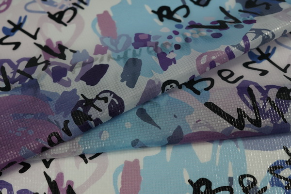 點(diǎn)評(píng): 跨季粉彩色系的層次感手繪涂鴉圖案,運(yùn)用直噴數(shù)碼印花技術(shù)呈現(xiàn),選用15D錦綸為原料,復(fù)合點(diǎn)狀幾何陣列排布的TPU膜,帶來若隱若現(xiàn)的數(shù)字風(fēng)微閃光效果,盡顯活力與樂趣,適用于休閑裝與戶外服裝。
