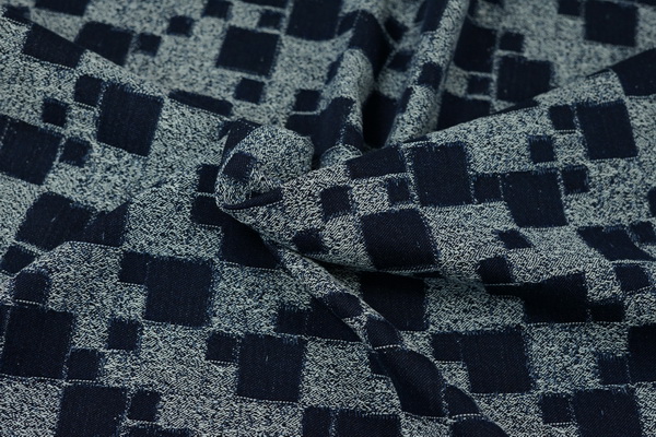 點(diǎn)評(píng):經(jīng)紗采用再生棉,緯紗采用羊絨和再生棉、再生滌綸混紡制成自絨花式紗(新型自有專利紡紗技術(shù)),面料無需抓毛即可自帶絨感;運(yùn)用茜草靛藍(lán)染色和低碳環(huán)保的自有BIGBOX染色技術(shù),通過大提花組織結(jié)構(gòu)設(shè)計(jì),形成經(jīng)典幾何千鳥格圖案,打造牛仔風(fēng)格的雙面花呢,煥新經(jīng)典單品,傳遞健康而精致的時(shí)尚理念。