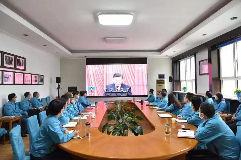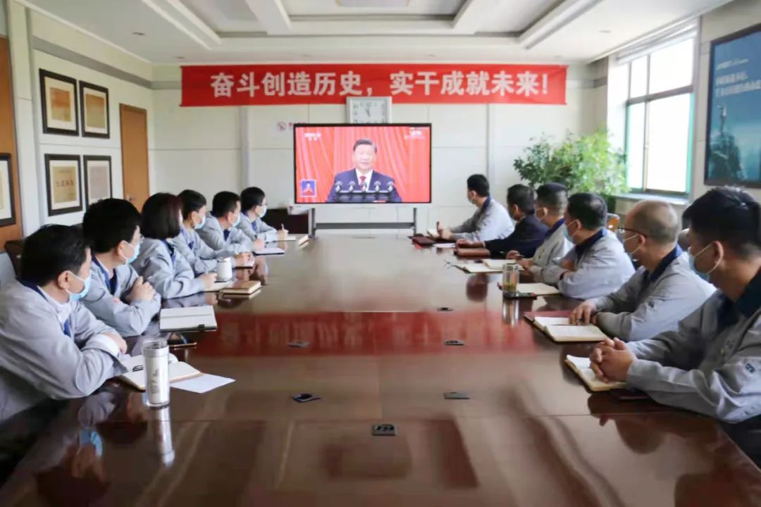 河北吉藁化纖有限責(zé)任公司領(lǐng)導(dǎo)班子成員和黨員們認(rèn)真聆聽二十大報(bào)告