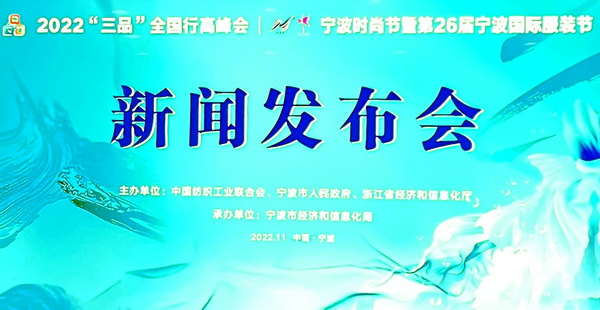 11月10日下午,2022“三品”全國行高峰會(huì)(以下簡稱“三品”高峰會(huì))和2022寧波時(shí)尚節(jié)暨第26屆寧波國際服裝節(jié)(以下簡稱時(shí)尚節(jié))舉行了新聞發(fā)布會(huì)。50多家媒體代表參加了發(fā)布會(huì)。
