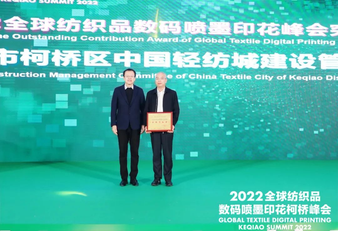 會上,組委會授予中國輕紡城建設(shè)管理委員會“2022全球紡織品數(shù)碼噴墨印花峰會突出貢獻獎”。為深圳市全印圖文技術(shù)有限公司頒發(fā)了“中國紡織品數(shù)碼印花設(shè)備研發(fā)生產(chǎn)基地”銅牌。同時還為第四屆中國印染行業(yè)協(xié)會印花技術(shù)專業(yè)委員會增補委員頒發(fā)了聘書。