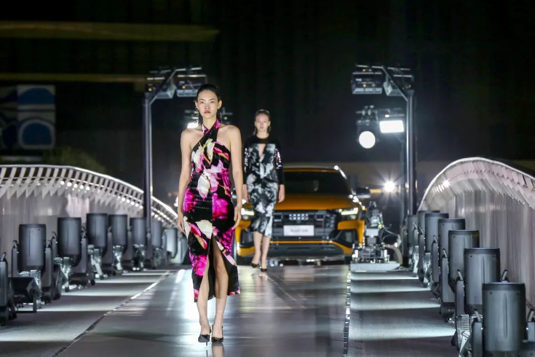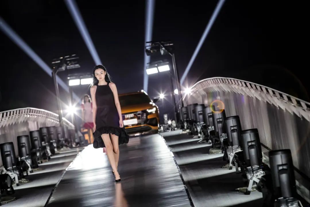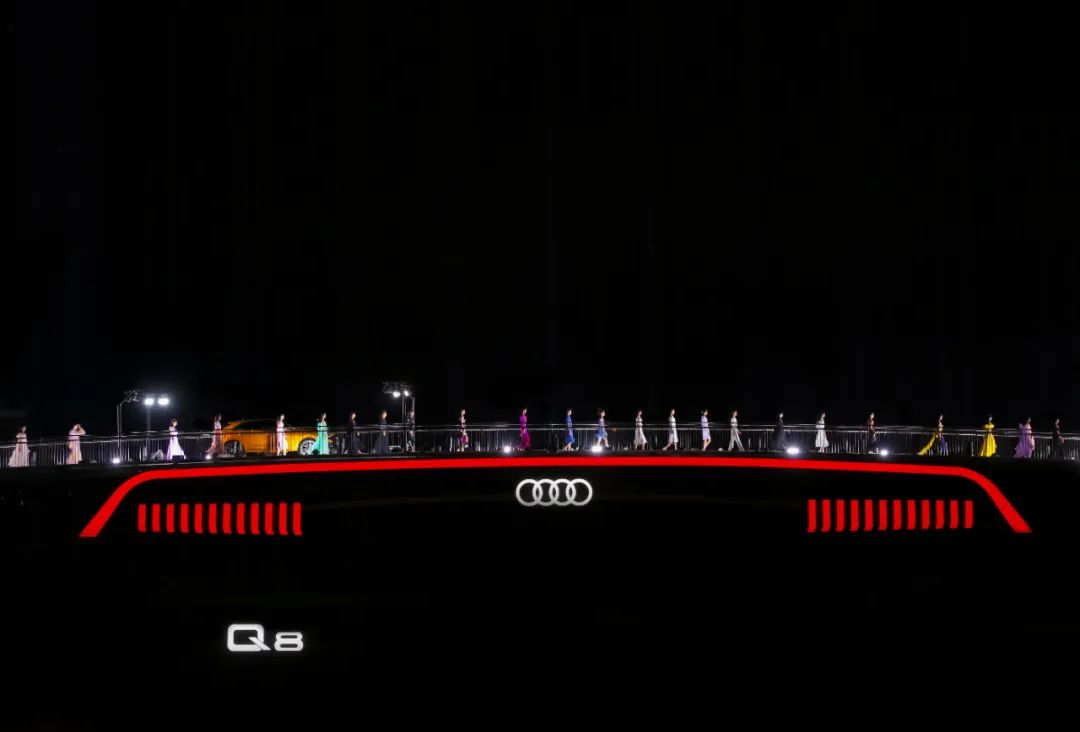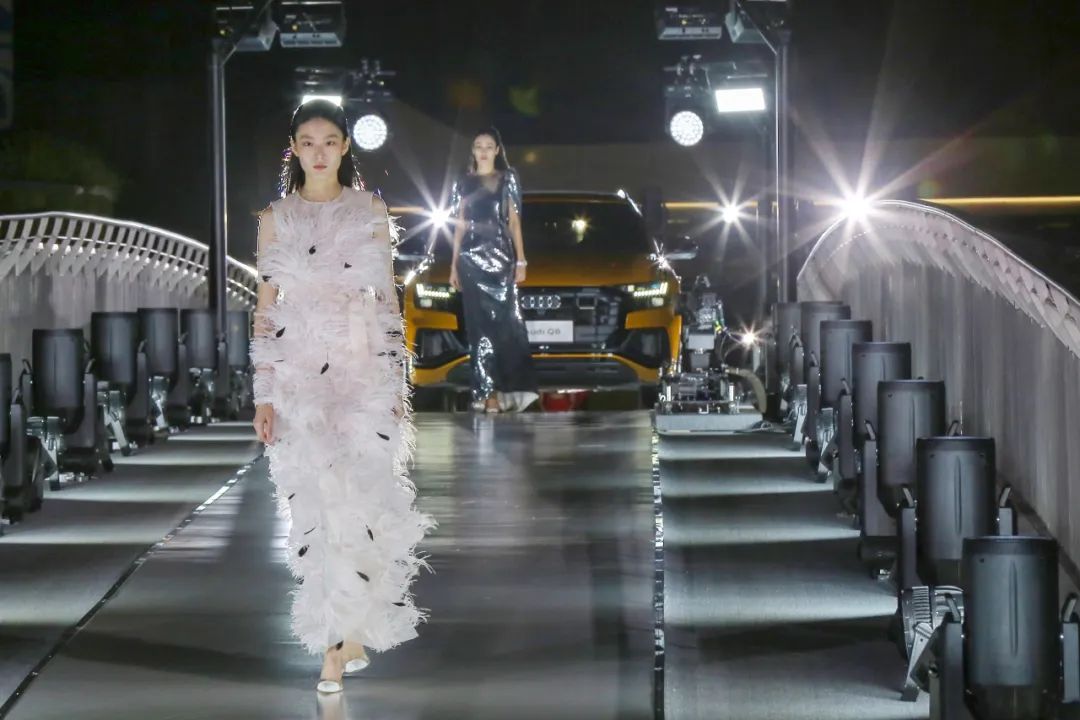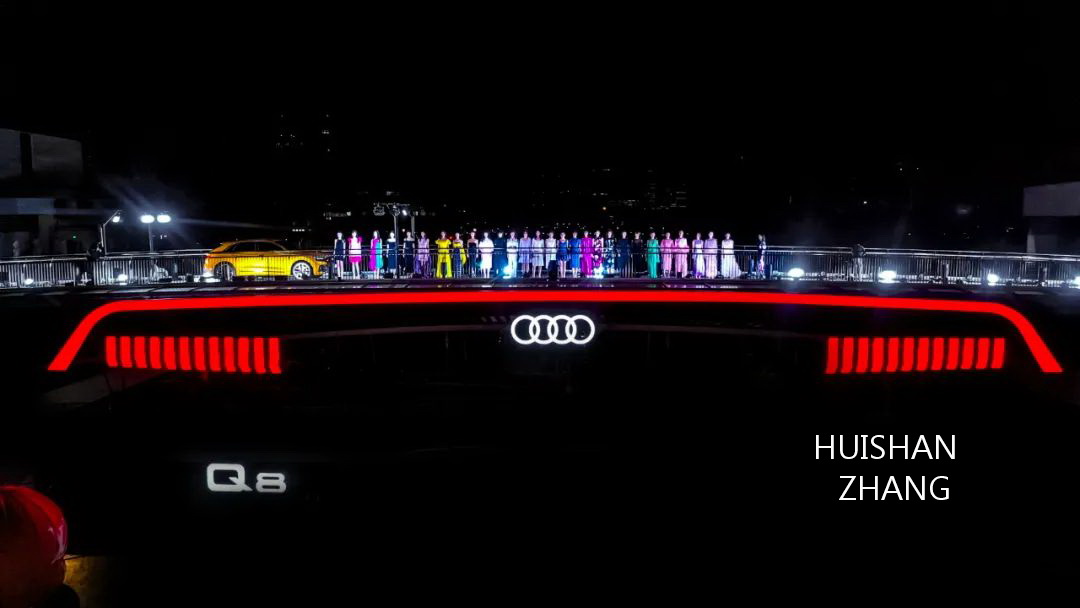 HUISHAN ZHANG與一汽奧迪共同打造“奧迪Q8無邊天際T臺秀”,點亮夜晚的上海。