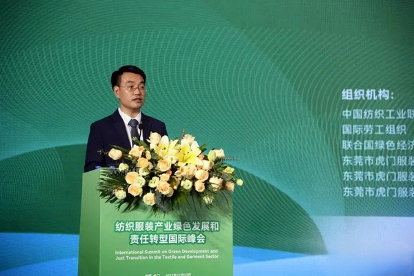 11月17日,由中國(guó)紡織工業(yè)聯(lián)合會(huì)(CNTAC)、國(guó)際勞工組織(ILO)及相關(guān)國(guó)際機(jī)構(gòu),與虎門(mén)鎮(zhèn)聯(lián)合舉辦的“2022紡織服裝綠色發(fā)展和責(zé)任轉(zhuǎn)型國(guó)際峰會(huì)”在虎門(mén)美思威爾頓酒店舉行,本次峰會(huì)采取線(xiàn)上線(xiàn)下相結(jié)合的方式,主會(huì)場(chǎng)設(shè)在虎門(mén)。國(guó)際紡聯(lián)主席、中國(guó)紡織工業(yè)聯(lián)合會(huì)會(huì)長(zhǎng)孫瑞哲,工業(yè)和信息化部消費(fèi)品工業(yè)司一級(jí)巡視員曹學(xué)軍,國(guó)際勞工組織北京局局長(zhǎng)李昌徽,虎門(mén)鎮(zhèn)黨委副書(shū)記、鎮(zhèn)長(zhǎng)吳慶球等領(lǐng)導(dǎo)、嘉賓,先后到場(chǎng)或通過(guò)現(xiàn)場(chǎng)連線(xiàn)方式出席會(huì)議并致辭,相關(guān)國(guó)際機(jī)構(gòu)代表,知名專(zhuān)家學(xué)者、企業(yè)代表等參會(huì),中國(guó)紡織工業(yè)聯(lián)合會(huì)社會(huì)責(zé)任辦公室主任閻巖主持。