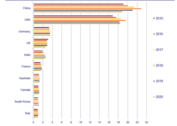 2015-2020年家居用品消費(fèi)量前10大市場