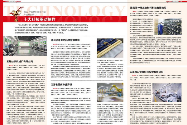 其中,浙江本意紡織科技有限公司榜上有名,榮獲2022中國(guó)紡織服裝行業(yè)年度精銳榜—“十大科技驅(qū)動(dòng)榜樣”。