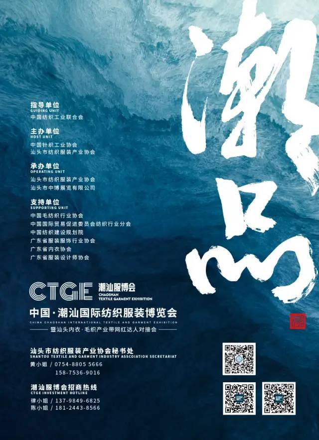 中國·潮汕國際紡織服裝博會(huì)得到了汕頭市委、市政府的大力支持,由中國針織工業(yè)協(xié)會(huì)、汕頭市紡織服裝產(chǎn)業(yè)協(xié)會(huì)共同主辦,全國各協(xié)會(huì)支持協(xié)辦,以汕頭及國內(nèi)內(nèi)衣家居服、毛衫產(chǎn)業(yè)為依托,以展示針織紡織服裝企業(yè)品牌、供應(yīng)鏈、新制造、新產(chǎn)品、新材料、新趨勢為主的展示、交易和宣傳平臺,致力打造集品牌推廣、文化傳播、展示交流、高端論壇、趨勢發(fā)布于一體的國際化紡織服裝產(chǎn)業(yè)平臺。