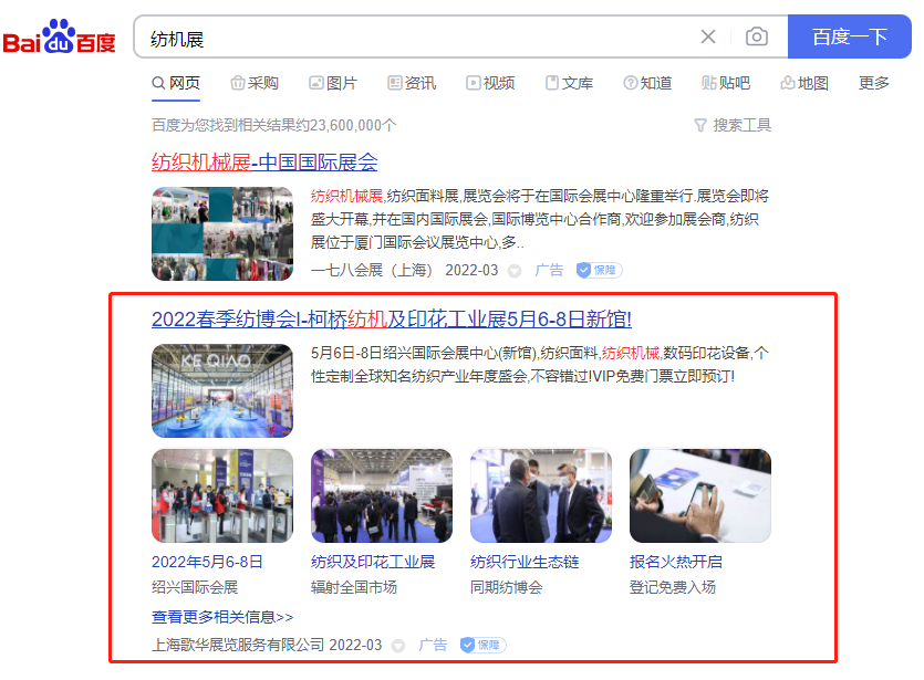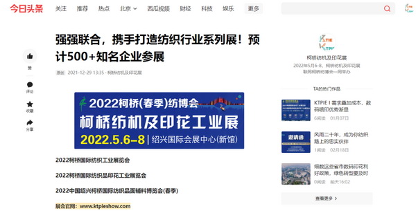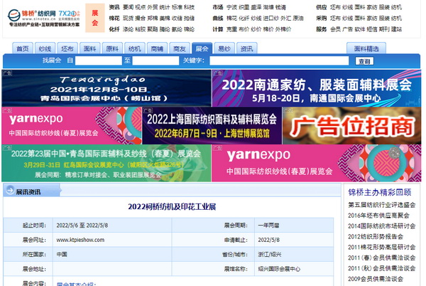 ▼柯橋春季紡博會(huì)、柯橋紡機(jī)及印花工業(yè)展將于2022年5月6-8日在柯橋重現(xiàn)盛宴,同館聯(lián)動(dòng)展出,匯聚紡織行業(yè)上下游企業(yè),加大產(chǎn)業(yè)間的互通與交流,力保前來參展參觀客戶滿意而歸