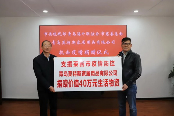 3月16日,青島家紡協(xié)會(huì)會(huì)長(zhǎng)、青島莫特斯家居用品有限公司董事長(zhǎng)王如平參加由青島慈善總會(huì)舉行的萊西疫情防控捐贈(zèng)儀式