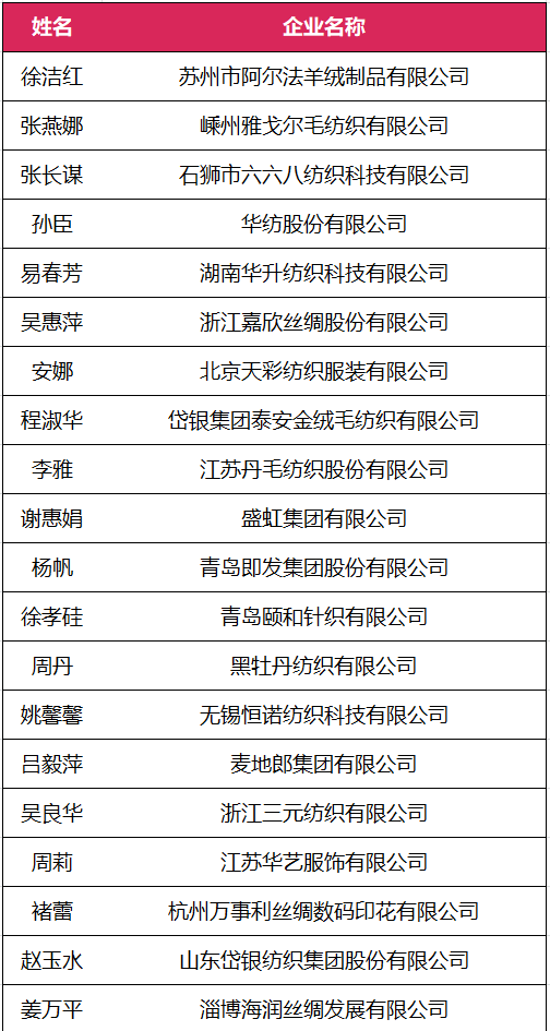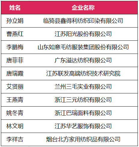 經(jīng)全國十佳紡織面料設計師及培養(yǎng)先進單位評委會對申報人和申報企業(yè)(單位)的資格審查、評審和公示,現(xiàn)決定授予山東如意科技集團有限公司張偉紅第七屆(2022年)“金梭獎”全國紡織面料設計師“金柯橋”獎榮譽稱號;授予魯豐織染有限公司葛慶龍等10名設計師第七屆(2022年)“金梭獎”全國十佳紡織面料設計師榮譽稱號;授予江蘇陽光股份有限公司曹燕紅等10名設計師第七屆(2022年)“金梭獎”全國優(yōu)秀紡織面料設計師榮譽稱號;授予華紡股份有限公司孫臣等20名設計師第七屆(2022年)“金梭獎”全國入圍紡織面料設計師榮譽稱號;授予山東南山智尚科技股份有限公司等10家單位第七屆(2022年)“金梭獎”全國紡織面料設計師培養(yǎng)先進單位榮譽稱號;授予紹興市柯橋區(qū)中國輕紡城建設管理委員會第七屆(2022年)“金梭獎”全國十佳紡織面料設計師及培養(yǎng)先進單位推動貢獻獎榮譽稱號。