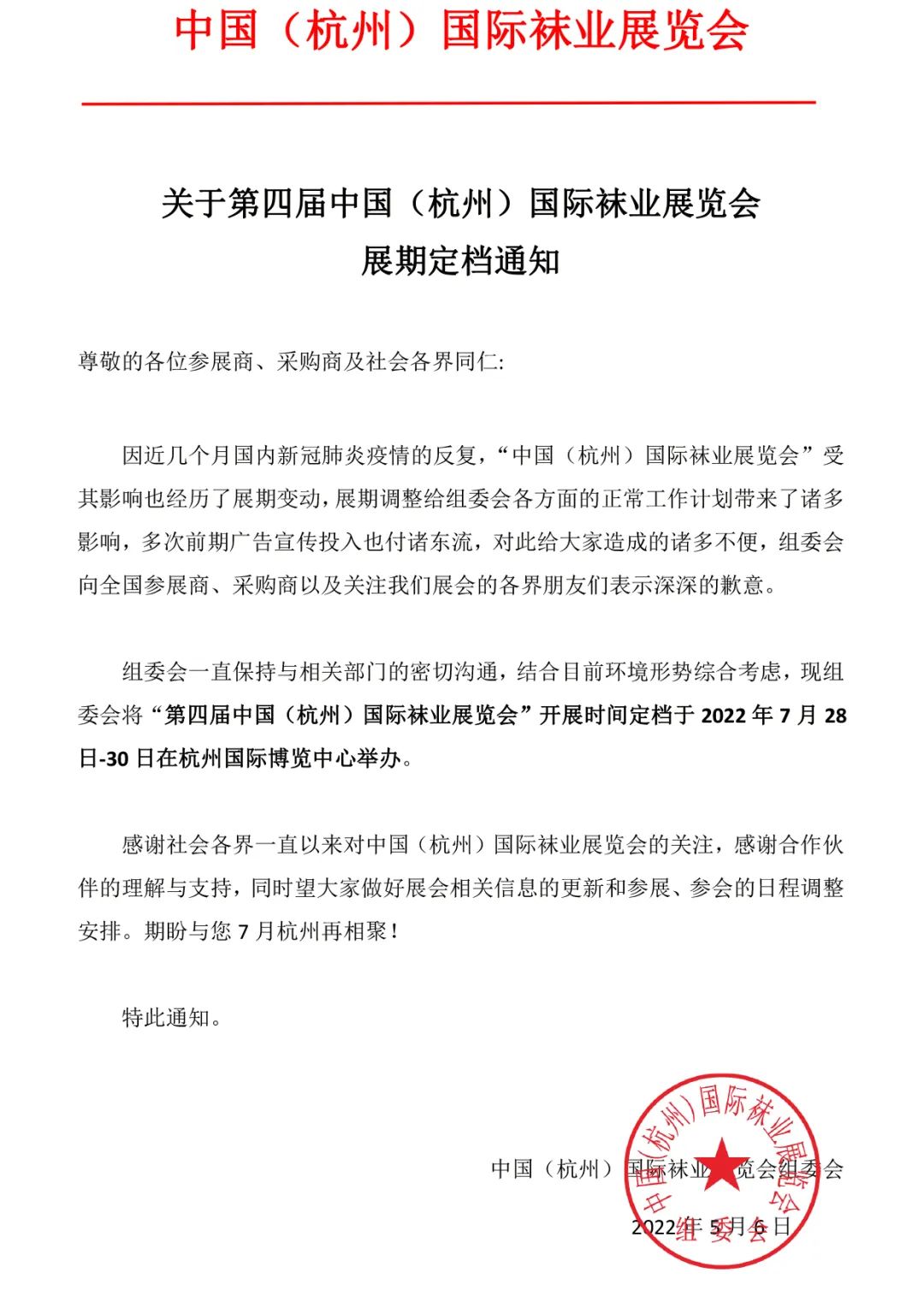 【定檔】中國(guó)(杭州)國(guó)際襪業(yè)展覽會(huì)將于7月底舉辦!