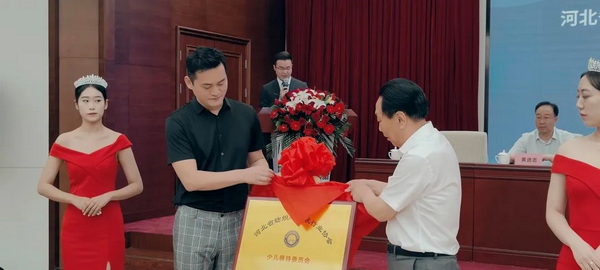 河北省紡織與服裝協(xié)會會長劉連紅與石家莊市青石文化傳播有限公司總經(jīng)理郁青松共同為河北省紡織與服裝行業(yè)協(xié)會少兒模特委員會揭牌。