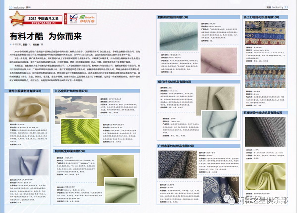 3、在后期采訪報(bào)道中,入圍及獲獎(jiǎng)面料企業(yè)優(yōu)先接受周刊采訪。