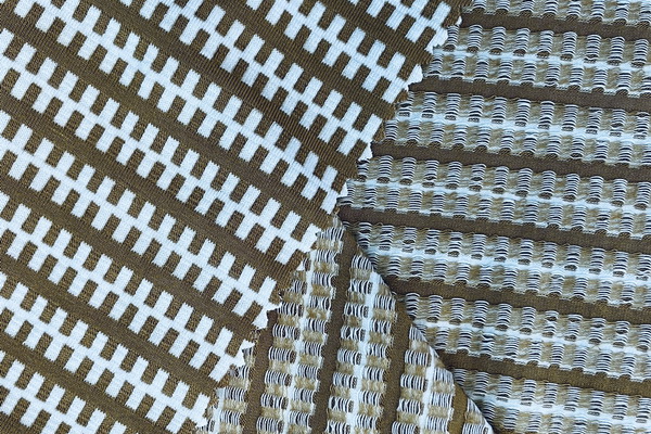 秀拉針織的色織提花羅馬布,別具一格,“人字斜”面料是都市商務(wù)休閑裝的必選,成衣既有梭織面料的感覺,又兼有針織面料的彈性。其他色織提花羅馬布,也是各有風(fēng)格。