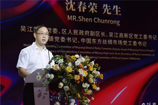 🔺吳江區(qū)委常委、副區(qū)長(zhǎng)、吳江高新區(qū)黨工委書記、盛澤鎮(zhèn)黨委書記、中國(guó)東方絲綢市場(chǎng)黨工委書記沈春榮致辭。