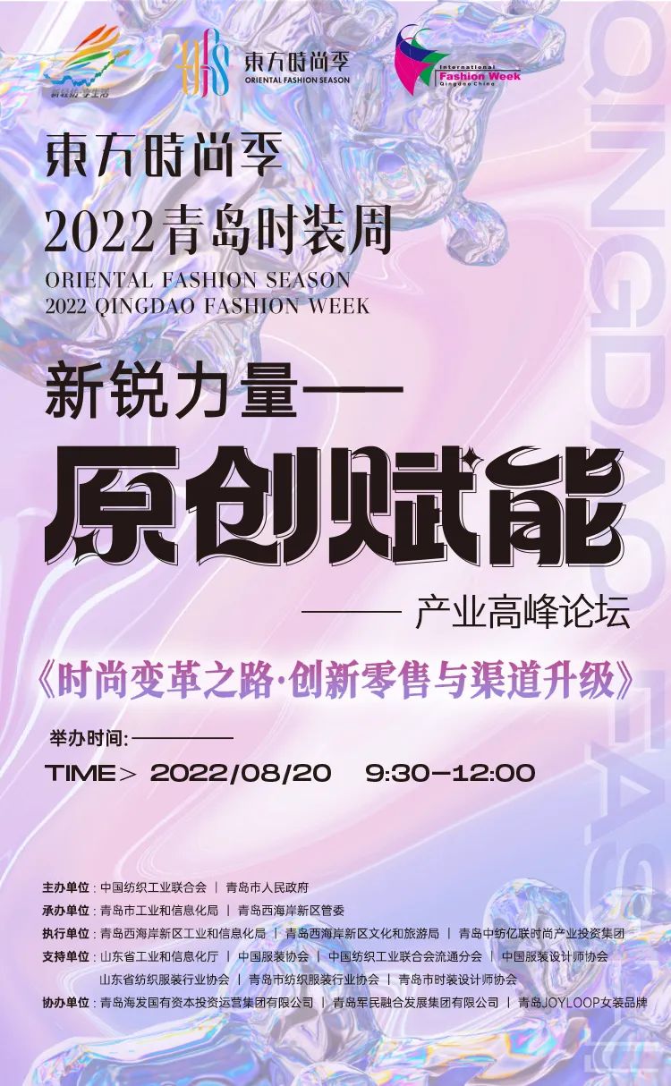 2022年青島時裝周《時尚變革之路·創(chuàng)新零售與渠道升級》產(chǎn)業(yè)高峰論壇將圍繞當(dāng)下服裝零售市場的新趨勢、新痛點和新需求,從行業(yè)趨勢、運營模式、客戶經(jīng)營、商品賦能等多個維度邀請服裝零售行業(yè)內(nèi)各領(lǐng)域?qū)<乙煌接懞吞剿魑磥矸b零售轉(zhuǎn)型的破局之路!