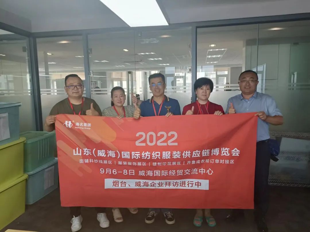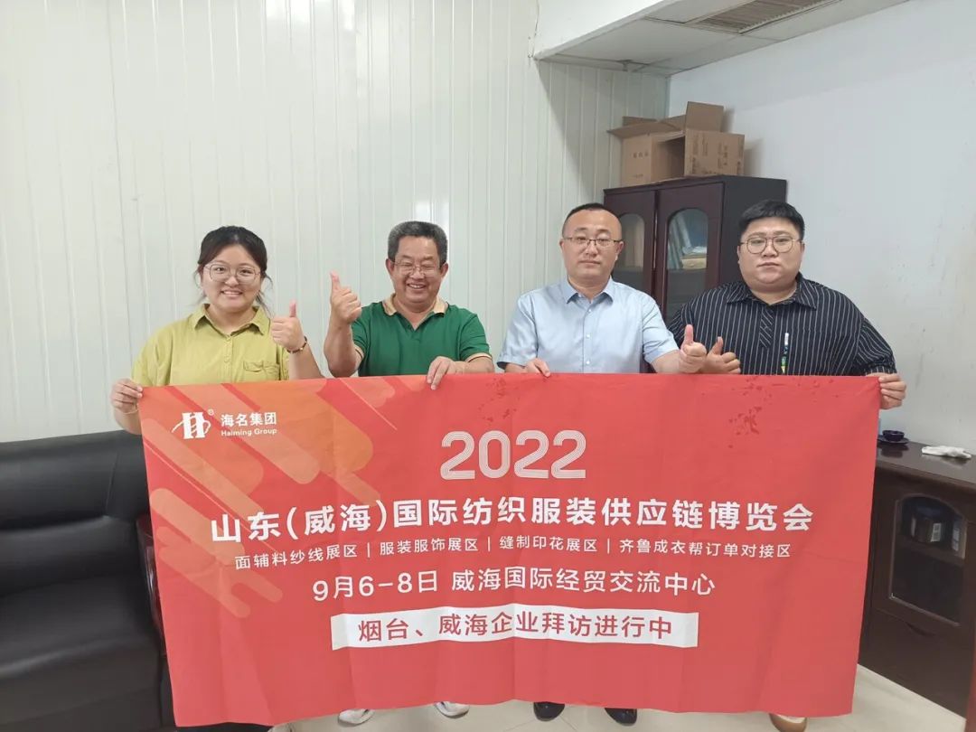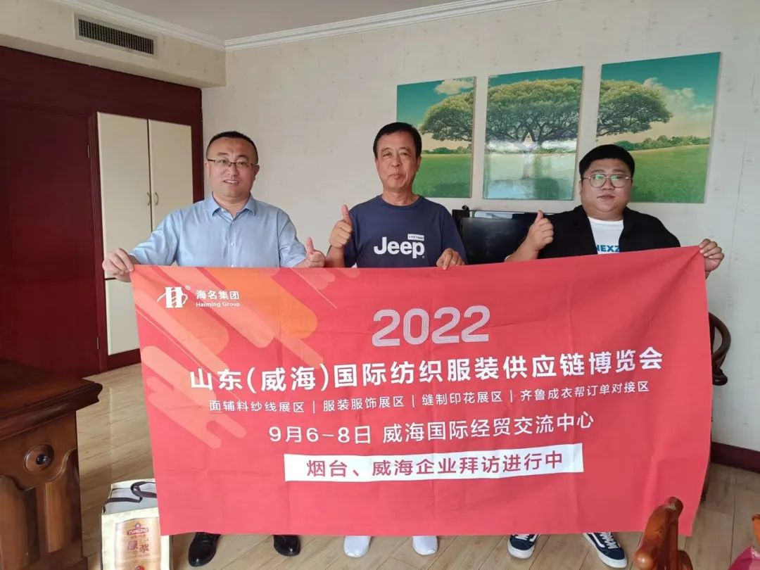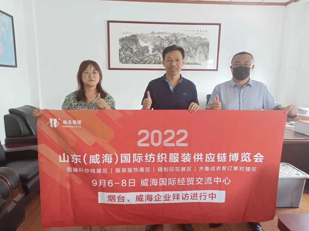 七月流火,海名會(huì)展—威海紡織服裝展的伙伴們,走進(jìn)威海、煙臺(tái)地區(qū),拜訪行業(yè)協(xié)會(huì)及服裝企業(yè),為即將于9月6日-8日在威海舉辦的2022山東(威海)國(guó)際紡織服裝供應(yīng)鏈博覽會(huì)進(jìn)行了推介。