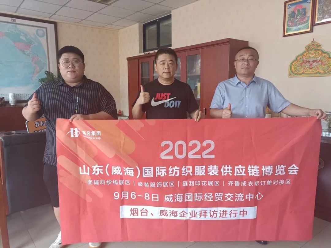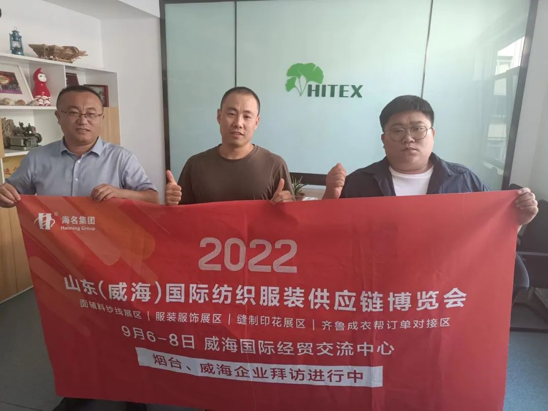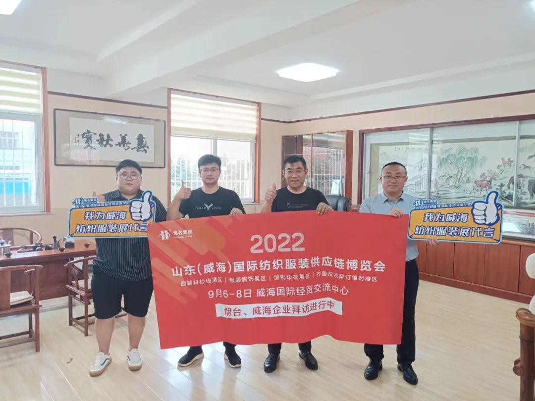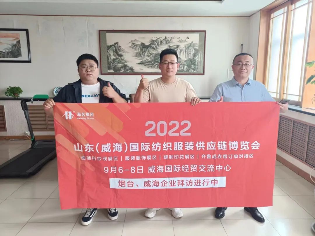 七月流火,海名會(huì)展—威海紡織服裝展的伙伴們,走進(jìn)威海、煙臺(tái)地區(qū),拜訪行業(yè)協(xié)會(huì)及服裝企業(yè),為即將于9月6日-8日在威海舉辦的2022山東(威海)國(guó)際紡織服裝供應(yīng)鏈博覽會(huì)進(jìn)行了推介。