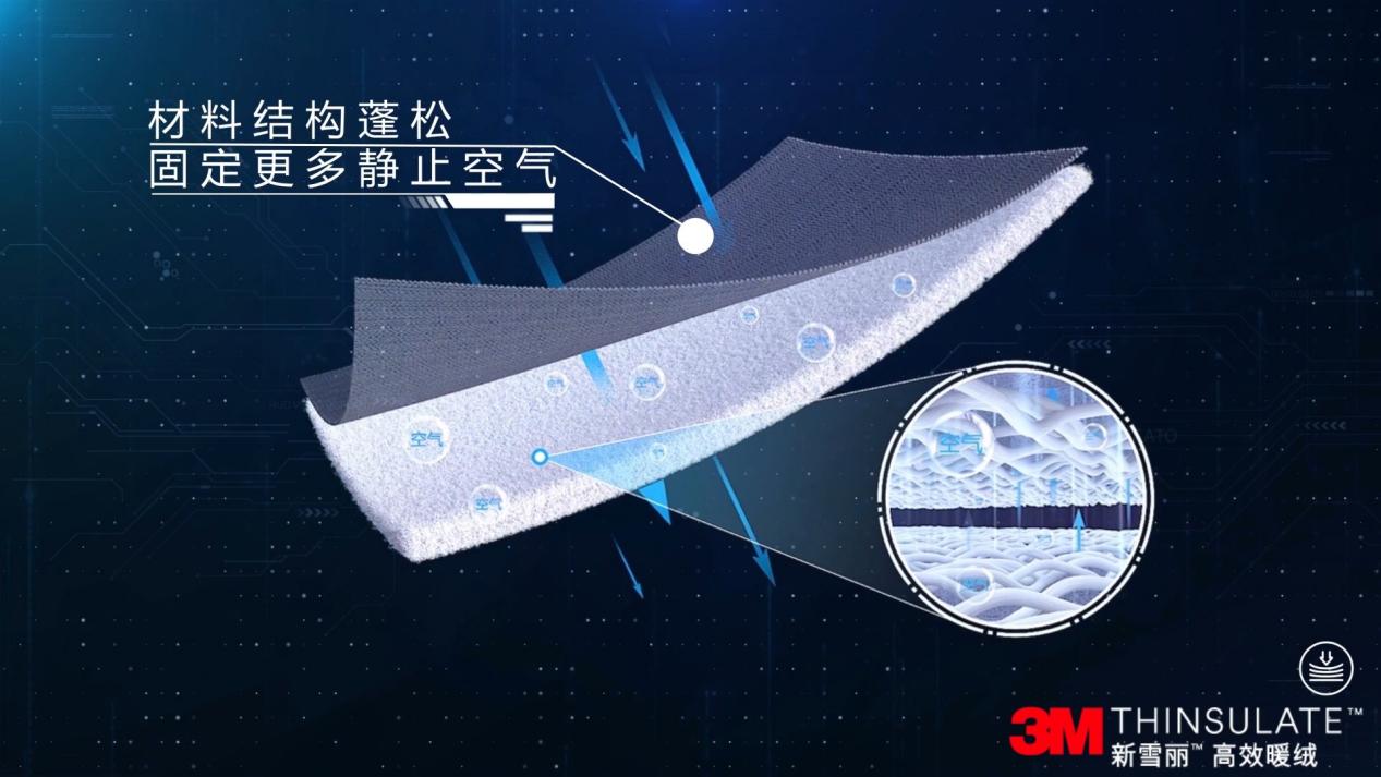聚焦產(chǎn)品,Thinsulate™新雪麗™品牌是3M公司注冊的保暖材料商標,1978年誕生于美國,是全球較早提出輕薄保暖概念的薄暖材料品牌之一。3M™新雪麗™保暖材料具有黃金三角保暖結(jié)構(gòu)(導(dǎo)熱率低、結(jié)構(gòu)蓬松以及屏蔽人體輻射),實現(xiàn)優(yōu)異的保暖性能,滿足人們對高品質(zhì)滑雪裝備的功能性與舒適性并存的多元化核心訴求。