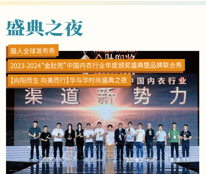 作為內(nèi)衣業(yè)的“奧斯卡”獎(jiǎng)——金肚兜獎(jiǎng),以行業(yè)至高榮譽(yù)褒獎(jiǎng)過(guò)去一年在內(nèi)衣產(chǎn)業(yè)創(chuàng)新、渠道創(chuàng)新、產(chǎn)品創(chuàng)新等方面做出卓著貢獻(xiàn)的企業(yè)。同時(shí)更有頗具前瞻看點(diǎn)的貓人全球發(fā)布秀、華與華時(shí)尚盛典之夜,盡展品牌新姿,掀起時(shí)尚新風(fēng)潮,將為觀眾帶來(lái)精彩紛呈的視聽盛宴。