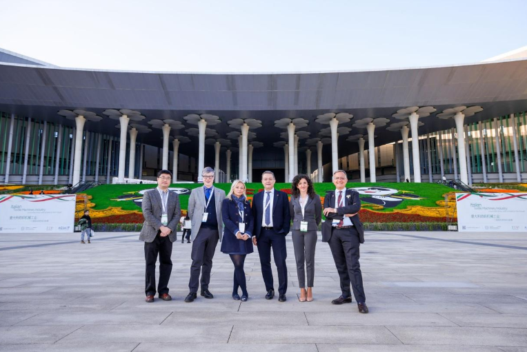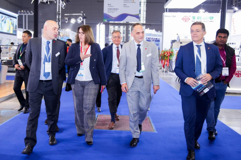 意大利駐上??傤I(lǐng)事安緹雅(Tiziana D’Angelo)一行前往展覽場(chǎng)地,與意大利國(guó)家展團(tuán)以及其他意大利參展企業(yè)進(jìn)行了深入交流。她鼓勵(lì)參展意大利企業(yè)進(jìn)一步拓展行業(yè)技術(shù)交流,加強(qiáng)創(chuàng)意創(chuàng)新合作,讓更多亞洲及中國(guó)客戶了解到意大利領(lǐng)先的紡織工業(yè)技術(shù)與解決方案。