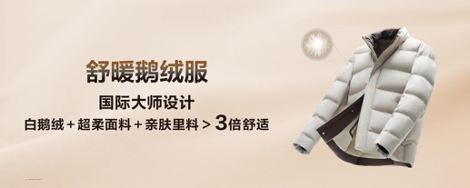 當(dāng)羽絨服進(jìn)入日常生活,現(xiàn)在的消費(fèi)者不再被時(shí)尚潮流所裹挾,將選擇標(biāo)準(zhǔn)聚焦于產(chǎn)品的保暖性與舒適度,用更全面的眼光衡量一件羽絨服的品質(zhì)。洞察消費(fèi)者真實(shí)需求,紅豆舒適男裝通過一件「舒暖鵝絨服」實(shí)現(xiàn)了冬季穿搭的更多可能性,穿行于不同的場景,以全面的舒適體驗(yàn),開啟羽絨服的舒適新篇章。