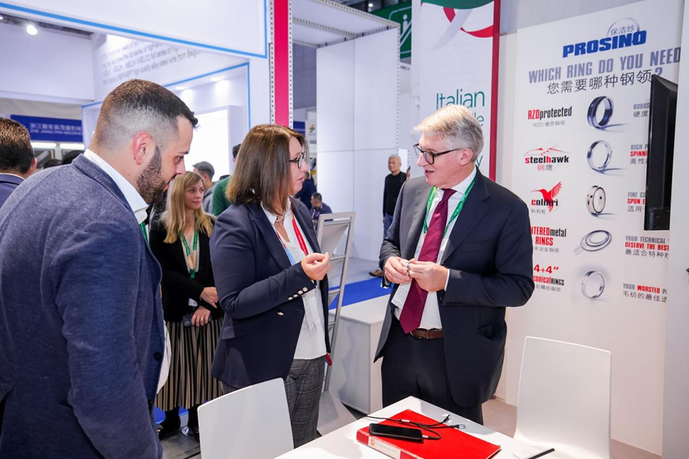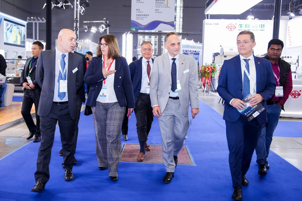 意大利駐上??傤I(lǐng)事安緹雅(Tiziana D’Angelo)一行前往展覽場地,與意大利國家展團(tuán)以及其他意大利參展企業(yè)進(jìn)行了深入交流。她鼓勵(lì)參展意大利企業(yè)進(jìn)一步拓展行業(yè)技術(shù)交流,加強(qiáng)創(chuàng)意創(chuàng)新合作,讓更多亞洲及中國客戶了解到意大利領(lǐng)先的紡織工業(yè)技術(shù)與解決方案。